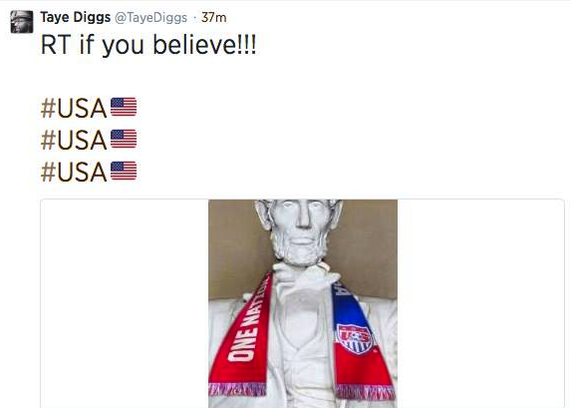 Especially on holidays like the Fourth of July, IRL patriotism is often conveyed in this kind of condensed shorthand, whether by way of burger-grilling or beer-drinking or fireworks-watching. Some of these activities might be intentionally political, but most are only marginally so: When you're grilling, you're probably not thinking to yourself, What do my burgers say about the American polity, anyways? There's only slightly more intentionality with the arch deployment of the "America" meme, which can come in the form of a tweet or Facebook post or Snapchat that relies on "America" or "USA" as a single-word signifier of patriotism and fond, mild irony. "Because America" is even stronger, if slightly more derisive; as my colleague Megan Garber wrote last fall, the use of "because" as a preposition before any word "is exceptionally bloggy and aggressively casual and implicitly ironic."