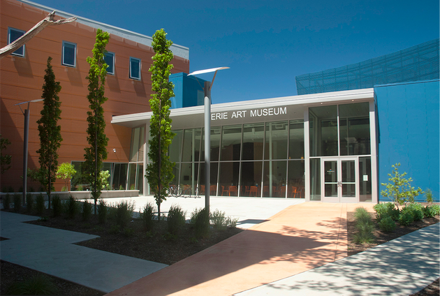 Today the bank-turned-customs house is one of a group of historic buildings, all connected, that comprise the LEED-certified Erie Art Museum.