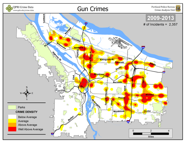 On the topic of gun crime, I can attest to a high level of shootings in NE Portland. I lived at the corner of Albina and Killingsworth for two years and there witnessed three shootings—two on the corner and one at the school, Jefferson, across the street. Right after my wife and I moved, there was another shooting at the school’s after-school center, bringing the total to four. Just googled it and looks like there was another one in February this year. And one last year.