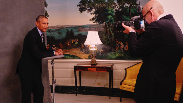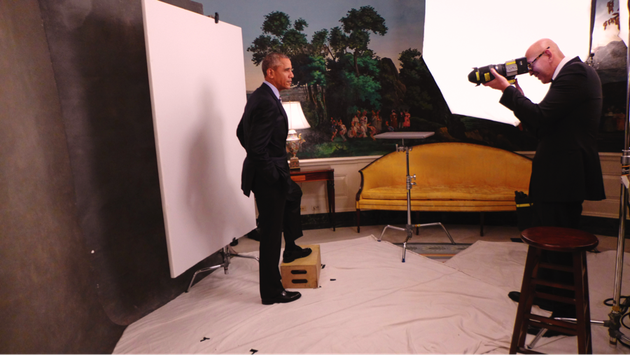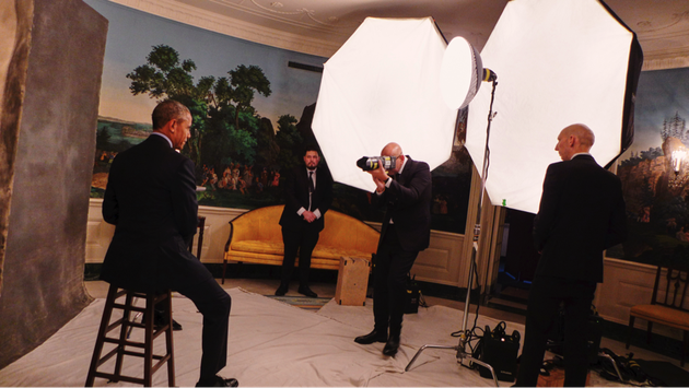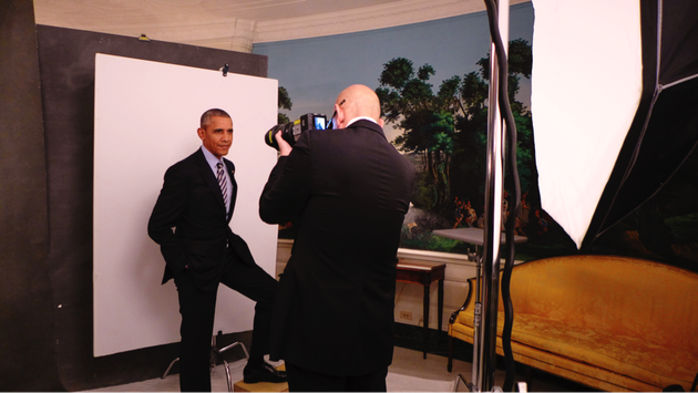 2:46pm: Ruven is a pro. He quietly instructs POTUS what to do. He shows him where to stand for the first set of shots on the white backdrop and starts shooting.