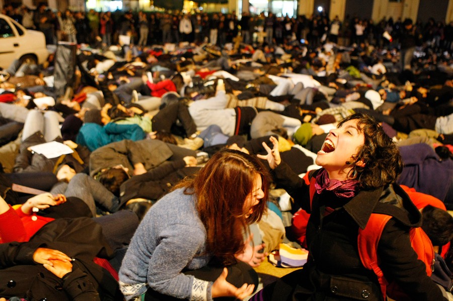Read moreStudents shout during a protest against the government entitled "Mass suicide by education" in Valparaiso, Chile, on June 28, 2011. Students lay down in protest in the streets of the city, demanding changes be made to the state education system. #
