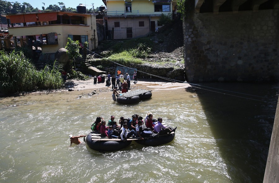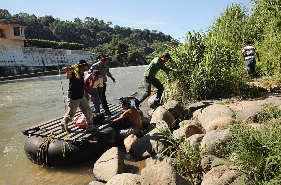 Read morePeople cross into Mexico, rafting across the Suchiate River from Guatemala, on August 2, 2013 in Ciudad Hidalgo, Chiapas, Mexico. Thousands of undocumented Central Americans pass illegally through Mexico, many of them immigrants on the first leg of their long and perilous journey north to the United States. #