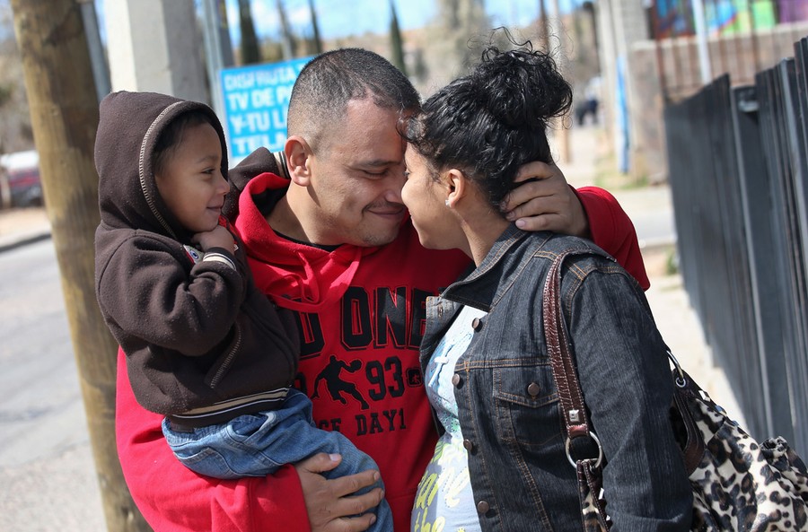 Read moreAmerican citizen Lace Rodriguez and her husband Javier Guerrero from Mexico, embrace with their son Javier Jr., in Nogales, Mexico, on March 10, 2013. The family lived together in Phoenix, Arizona before Guerrero, an undocumented worker from Mexico, was detained by the Border Patrol after being stopped for speeding and drug possession, held for three months by Immigration and Customs Enforcement (ICE) and then deported March 4 to Nogales, Mexico. Guerrero had lived in the United States for 17 years. He and Rodriguez, a medical student, have two children, and she is nine months pregnant with a third. The splitting up of families has become a major issue as the U.S. works towards immigration reform. #