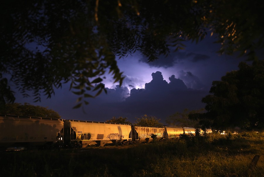Read moreLightning flashes across the sky as a freight train known as "la bestia," or the beast, prepares to depart Arriaga, Mexico, on August 3, 2013. Thousands of migrants ride atop the trains during their journey through Mexico to the U.S. border. #
