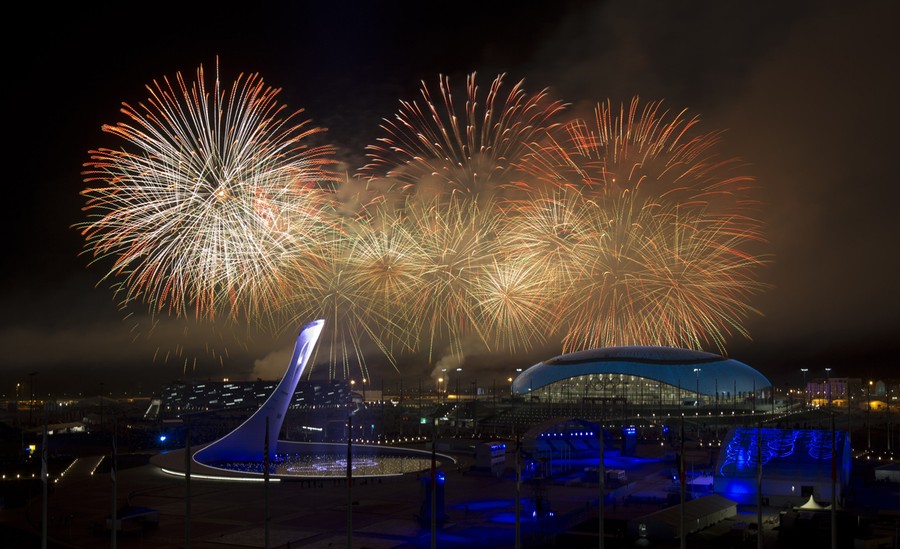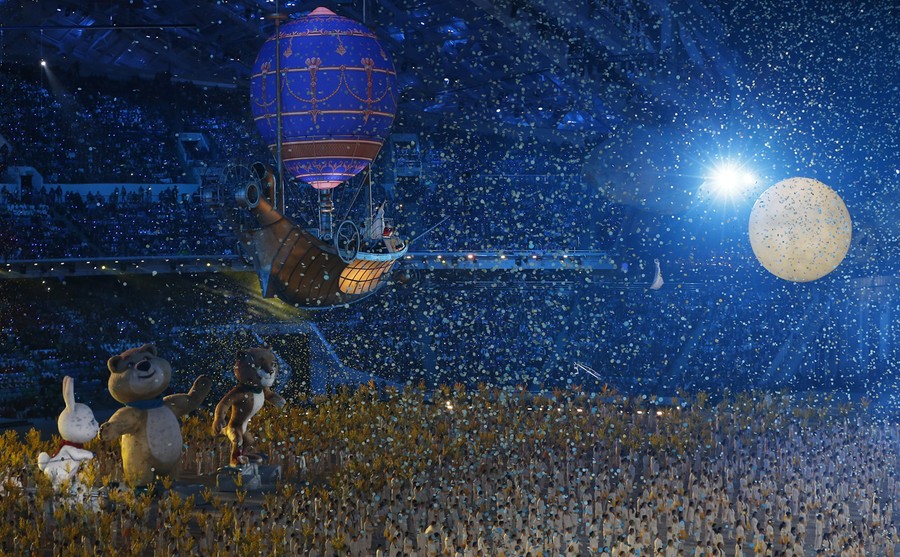 The Sochi Winter Olympics concluded yesterday, after 16 days of competition on the ice and snow. Host nation Russia won the most medals overall, taking home 33, followed by the U.S. with 28, and Norway with 26. The event was brought to a close in Fisht Stadium last night, with a massive closing ceremony ending with a handoff to Pyeongchang, South Korea, host nation of the 2018 Winter Olympics. Collected below are images of the last days of competition, and last night's closing ceremony. Be sure to also see Olympic Photos Part I, and Part II, earlier on In Focus.