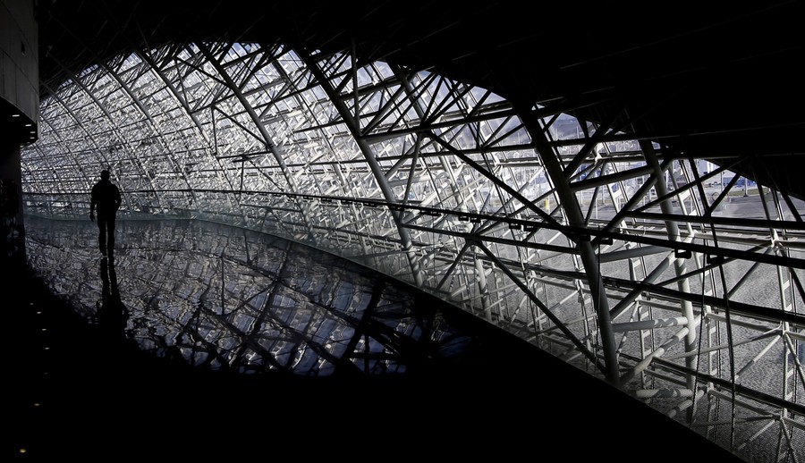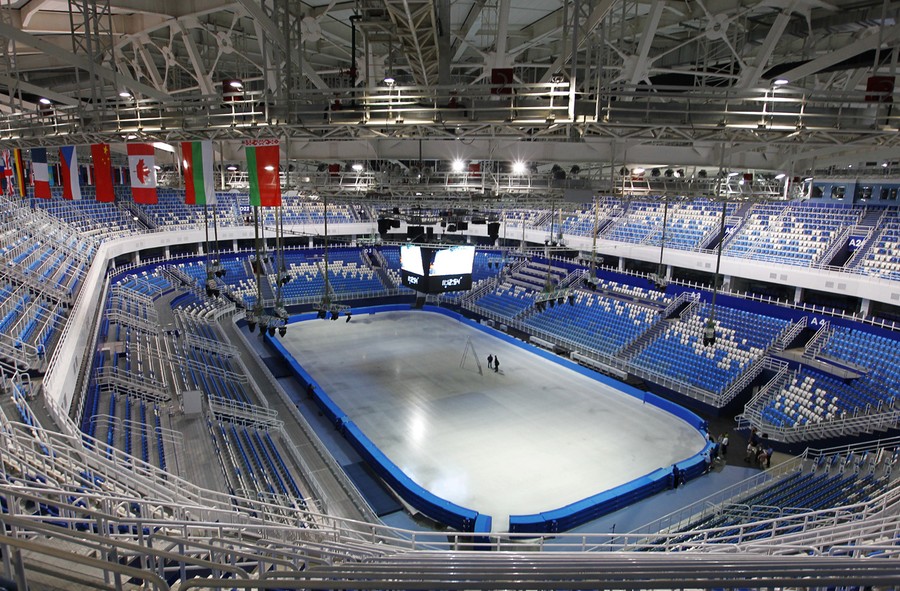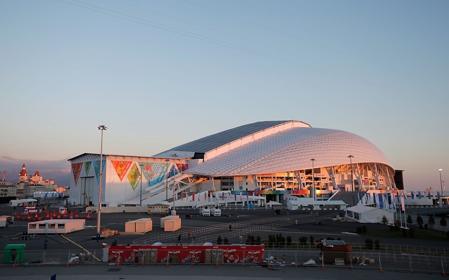 Read more(4 of 4) An aerial view from a helicopter shows the Olympic Park on December 23, 2013. Sochi will host the 2014 Winter Olympic Games in February. The view shows (clockwise from top) the Fisht Olympic Stadium, the Shayba Arena, the Bolshoy Ice Dome, the Ice Cube Curling center, the Adler Arena and the Iceberg Skating Palace. Picture taken December 23, 2013. #