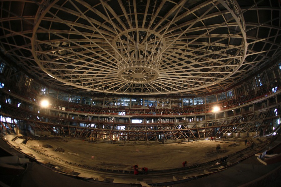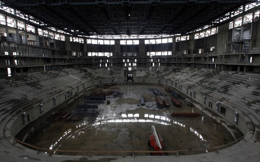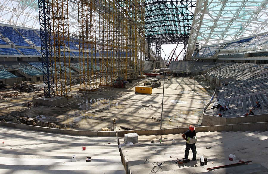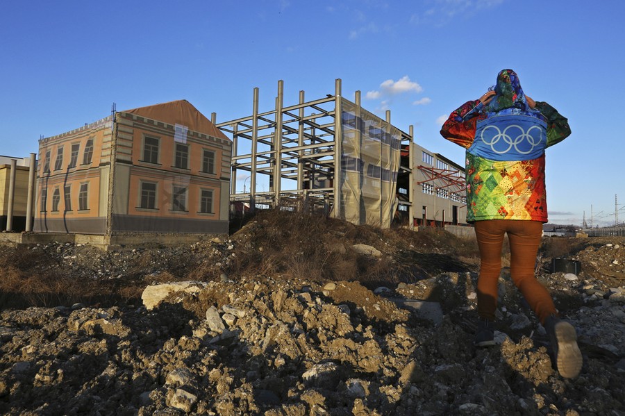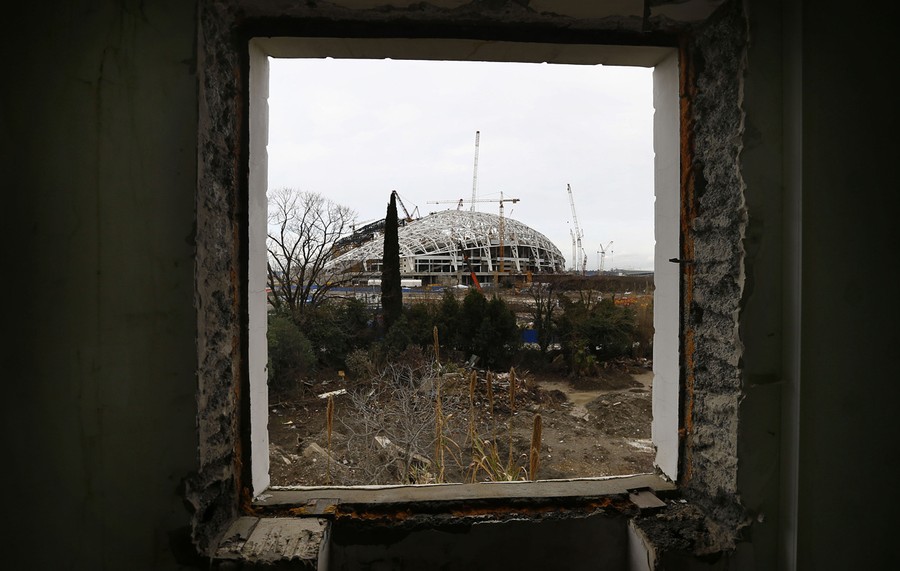 Read more(2 of 4) A picture shot through the window of a house -- scheduled to be torn down because it is within the perimeters of the Olympic Park -- shows the Fisht Stadium, on February 18, 2013. #