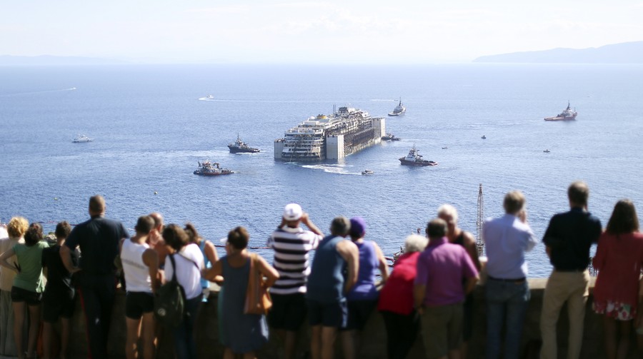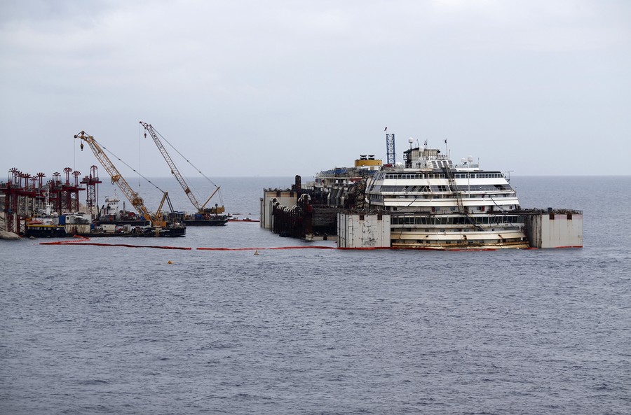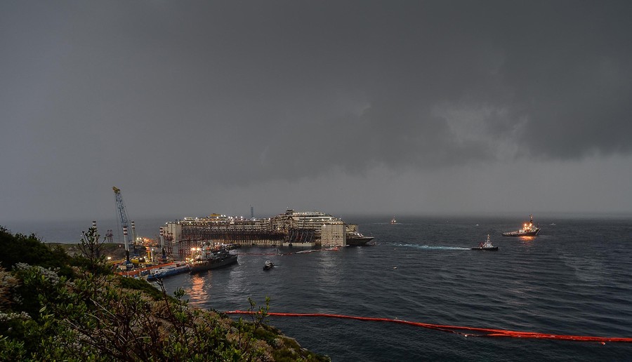 More than two and a half years since it crashed near Isola del Giglio, Italy, the wreck of the Costa Concordia was successfully refloated this week, and has begun its final journey—a four-day trip to a scrap yard in Genoa. The cruise ship capsized after striking a reef on January 13, 2012, killing 32 passengers and crew members. The complex salvage operation was the largest and most expensive in history. Gathered here are images, including several interior shots, of the ship's time near Isola del Giglio—from the initial disaster to today's towing away of the Costa Concordia.