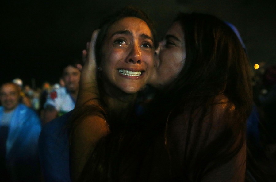 Read moreAn emotional Brazil fan reacts after being defeated by Germany 7-1 during the 2014 FIFA World Cup Brazil Semi Final match at Estadio Mineirao in Belo Horizonte, Brazil, on July 8, 2014. #