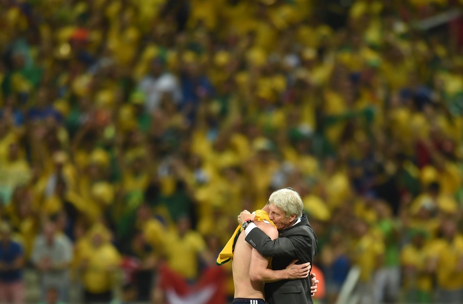 Now that the Quarter-Finals and Semi-Finals have been decided, only two matches remain, with the Final of the 2014 FIFA World Cup—between Germany and Argentina—taking place on Sunday. Host nation Brazil suffered a stinging defeat on July 8, as Germany moved on to the Final with a score of 7-1. Gathered here are images from the last group of games, and some of the fans riding the emotional rollercoaster of cheering for their teams as they battled in Brazil, anticipating this weekend's final two matches.