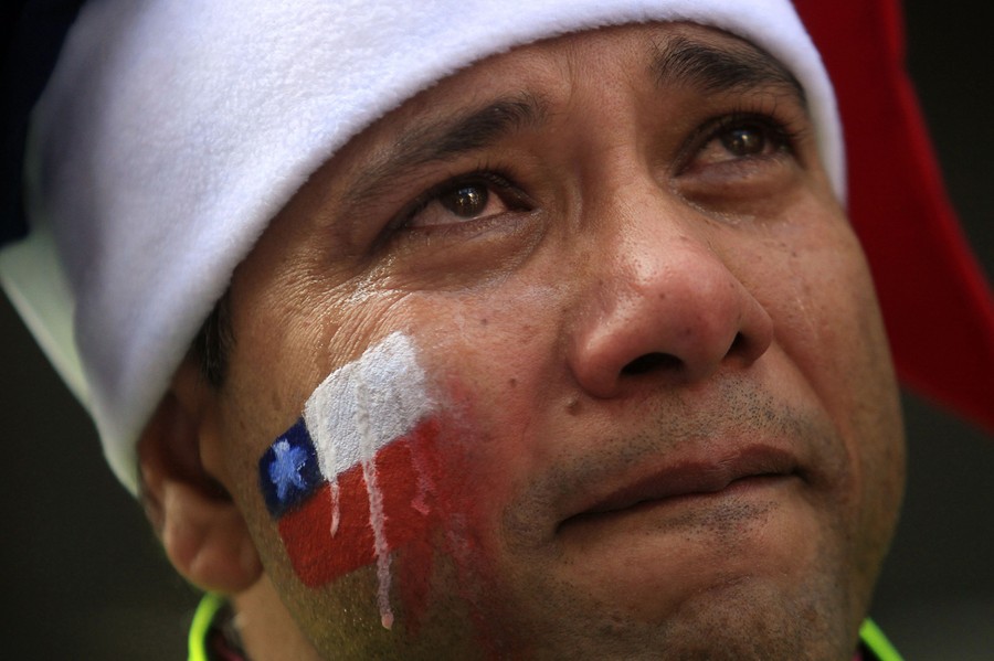 Read moreA Chile soccer fan cries after his team was defeated by Brazil in a World Cup round of 16 match, as he watches the game on TV in Santiago, Chile, on June 28, 2014. Chile lost the match to Brazil 3-2 on penalties after the game ended 1-1. #
