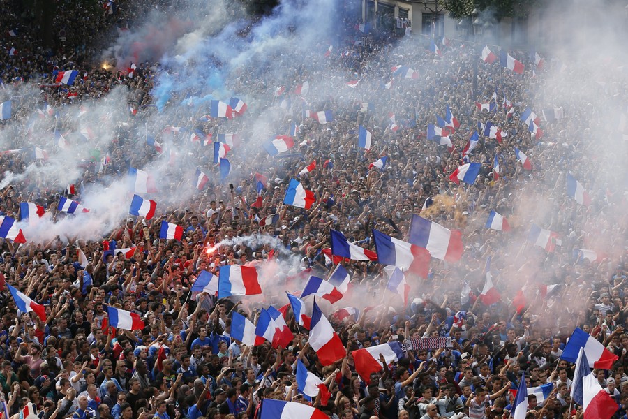 Read moreFrance team fans wave flags as they gather to watch the 2014 World Cup quarter-finals soccer match between France and Germany at the Maracana stadium in Rio de Janeiro, on a giant screen outside the city hall in Paris, on July 4, 2014. #