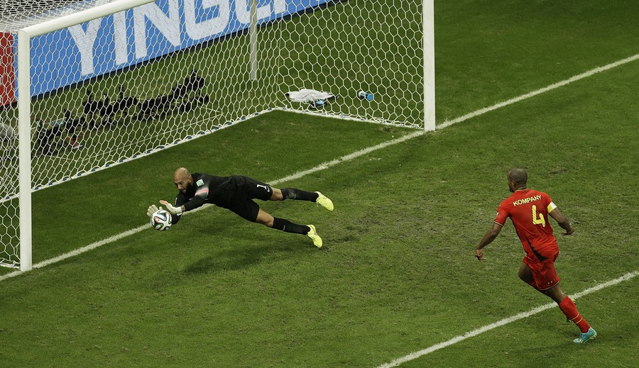 Read moreUSA goalkeeper Tim Howard makes a save as Belgium's Vincent Kompany, right, looks on during the World Cup round of 16 soccer match between Belgium and the USA at the Arena Fonte Nova in Salvador, on July 1, 2014. #