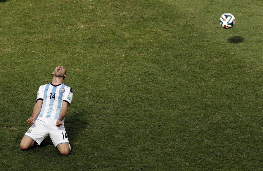 Read moreArgentina's Javier Mascherano celebrates at the end of the World Cup quarterfinal soccer match against Belgium at the Estadio Nacional in Brasilia, on July 5, 2014. Argentina won 1-0. #