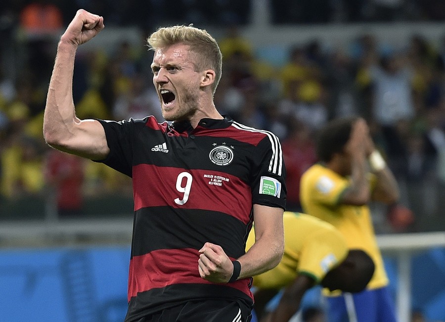 Read moreGermany's Andre Schuerrle celebrates after scoring his side's sixth goal during the World Cup semifinal soccer match between Brazil and Germany at the Mineirao Stadium in Belo Horizonte, on July 8, 2014. #