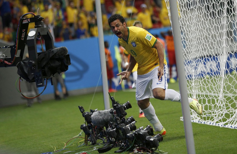 Read moreBrazil's Fred celebrates after scoring a goal during the 2014 World Cup Group A soccer match between Cameroon and Brazil at the Brasilia national stadium on June 23, 2014. #