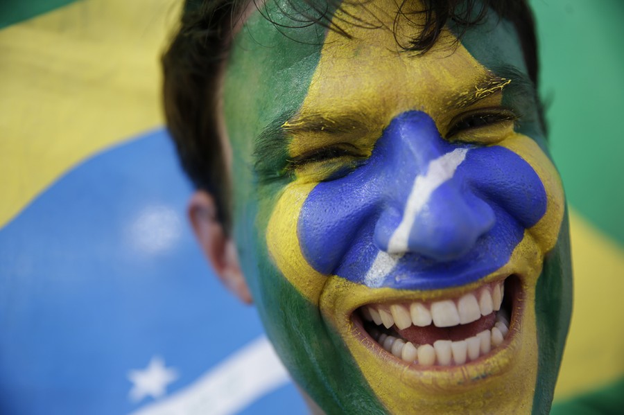 Read moreA soccer fan with his face painted to represent Brazil's national flag, waits to enter the Arena Castelao, for the World Cup quarterfinal match between Brazil and Colombia in Fortaleza on July 4, 2014. #