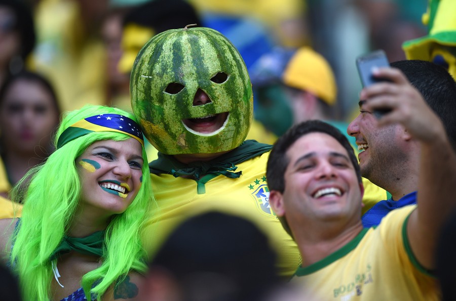 Read moreA Brazil supporter wearing a watermelon mask cheers prior to the quarter-final football match between Brazil and Colombia at the Castelao Stadium in Fortaleza on July 4, 2014. #