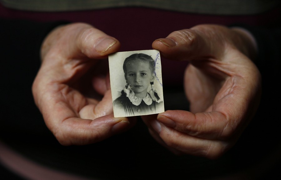 Read moreAuschwitz death camp survivor Barbara Doniecka, 80, who was registered with camp number 86341, holds up wartime photo of herself, as she poses for a photograph in Warsaw on January 12, 2015. Doniecka was 12 years old during the Warsaw Uprising when she was sent to Pruszkow camp. She was then sent by train to Auschwitz-Birkenau. #