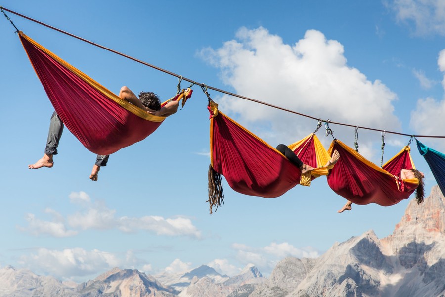 Read morePeople relaxing in hammocks around 40 meters (130 ft) above the ground. This took place in an annual highline meeting in Monte Piana, in the Italian Dolomites last autumn. For some it might look like a nightmare to dangle so far above the ground but for some this was just the way to take a rest. #