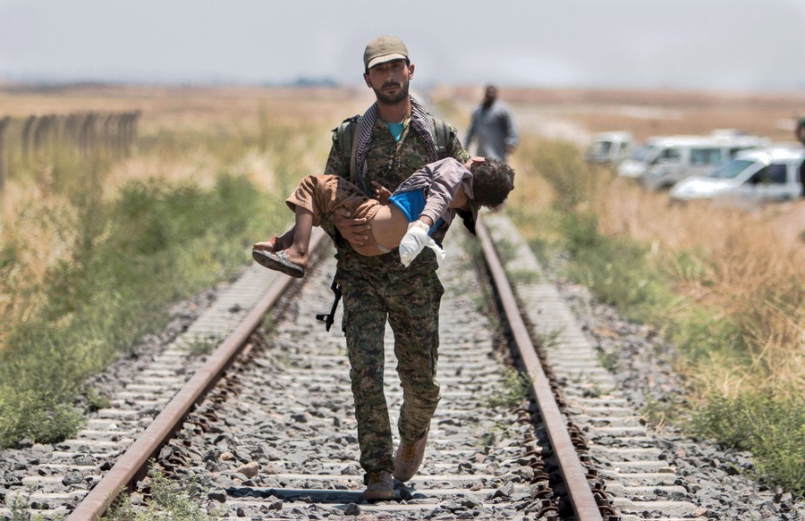 Read moreA Kurdish People's Protection Units (YPG) fighter carries a boy injured by what they said was a mine after they fled Maskana town in the Aleppo countryside and make their way towards the Turkish border in Tel Abyad town, Syria, on June 16, 2015. Aided by U.S.-led air strikes, the Kurdish-led YPG militia may have dealt Islamic State its worst defeat to date in Syria by seizing the town of Tel Abyad at the Turkish border, cutting a supply route to the jihadists' de facto capital of Raqqa city. #