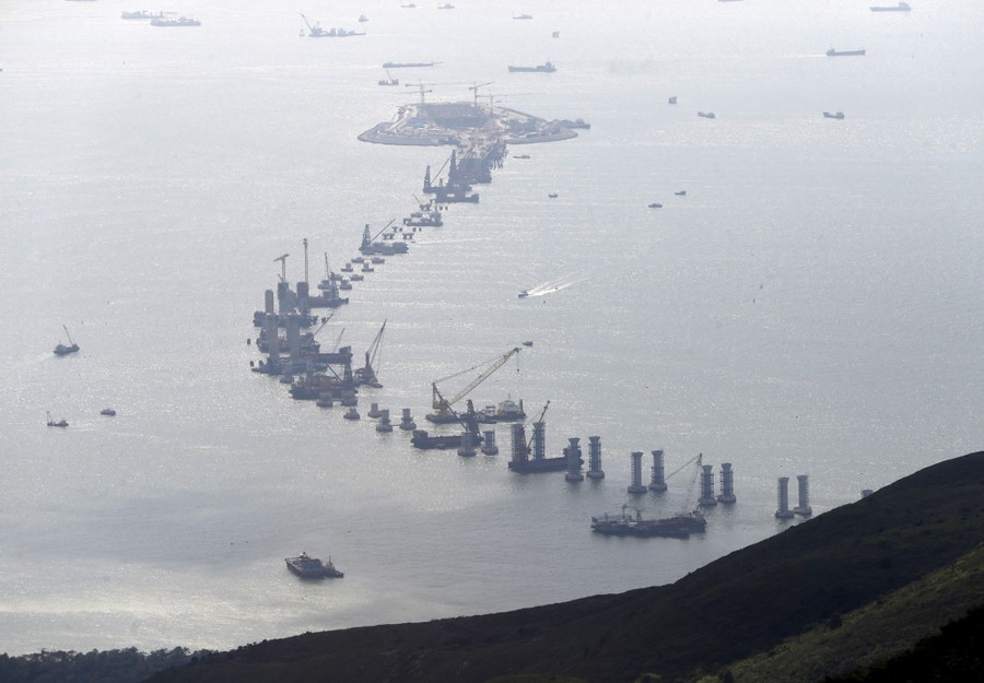 Read moreThe Hong Kong-Zhuhai-Macao Bridge (HZMB), which will link the three cities in the Pearl River Delta, under construction off Hong Kong's Lantau Island, China, on June 12, 2015. #