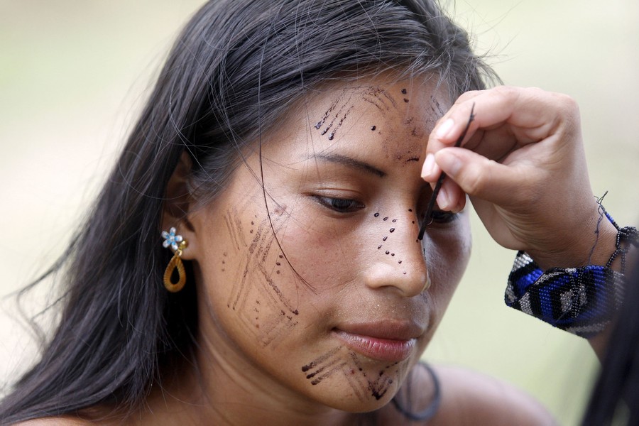 Read moreA woman of the Nonam Wounaan indigenous group has her face painted during the tenth meeting of the ancestral knowledge in Puerto Pizario, in the department of Valle del Cauca, Colombia, on June 12, 2015. The indigenous authorities organize a week of competitions of traditional activities every two years to transmit ancestral knowledge to new generations. #