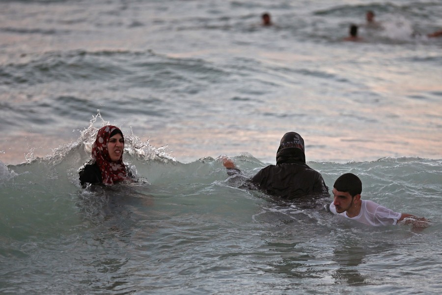 Read morePalestinians enjoy a dip in the ocean at Gaza beach on June 13, 2015, in Gaza City. Palestinians were taking the opportunity to relax and enjoy picnics on Gaza beach before the holy month of Ramadan which starts next week. Thousands of Palestinians descend on the 75km sandy beach of Gaza each day to relax, fish and escape the noise and heat of the city. The devastation across Gaza can still be seen nearly one year on from the 2014 conflict between Israel and Palestinian militants. Money pledged by the international community six months ago to rebuild Gaza has not materialized leaving many Palestinians impoverished and still suffering with the poor economy. #