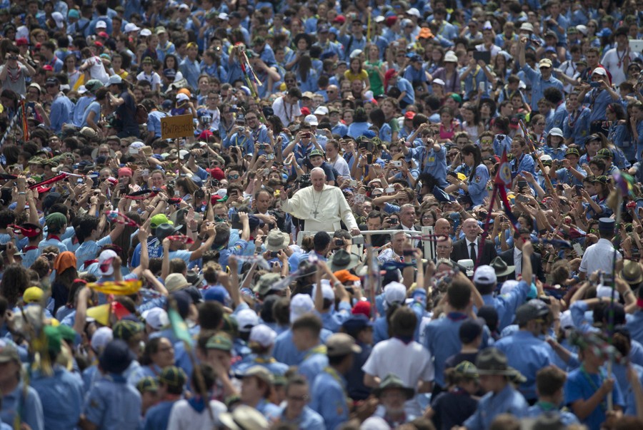 Read morePope Francis is cheered by the crowd as he arrives for an audience with Italian AGESCI boy scouts association's members in St. Peter's Square at the Vatican, on June 13, 2015. #