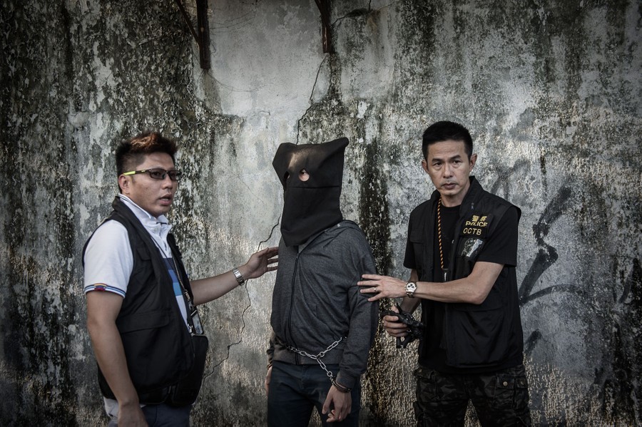Read moreA suspect is escorted by policemen during a crime reconstruction in the east-coast district of Sai Kung in Hong Kong on June 16, 2015, a day after suspected explosives were seized at an abandoned television studio. China warned against "radical forces" in Hong Kong after police arrested 10 people on suspicion of making explosives ahead of a vote on a controversial political reform package. #