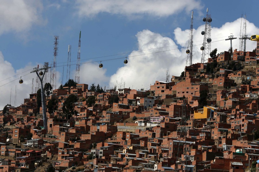 Read moreA cable car between La Paz and El Alto passes above a neighborhood in La Paz, Bolivia, on October 10, 2014. #