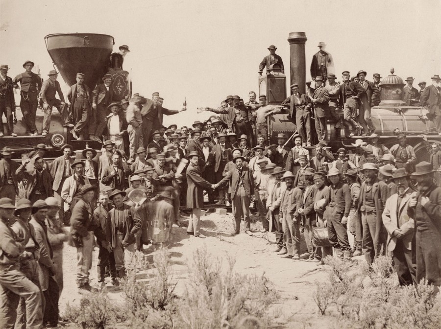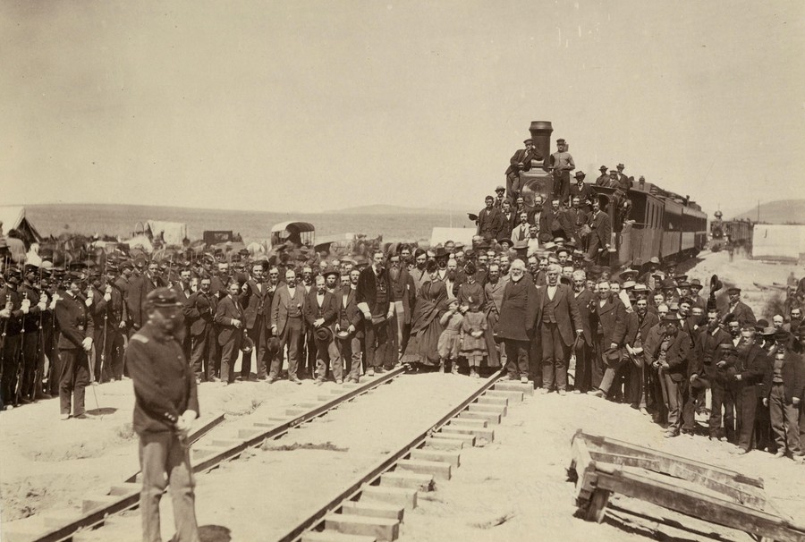 Read moreEast and West shaking hands at laying last rail. The ceremony took place on May 10, 1869, marking the placement of the “golden spike” at Promontory Summit, Utah. #