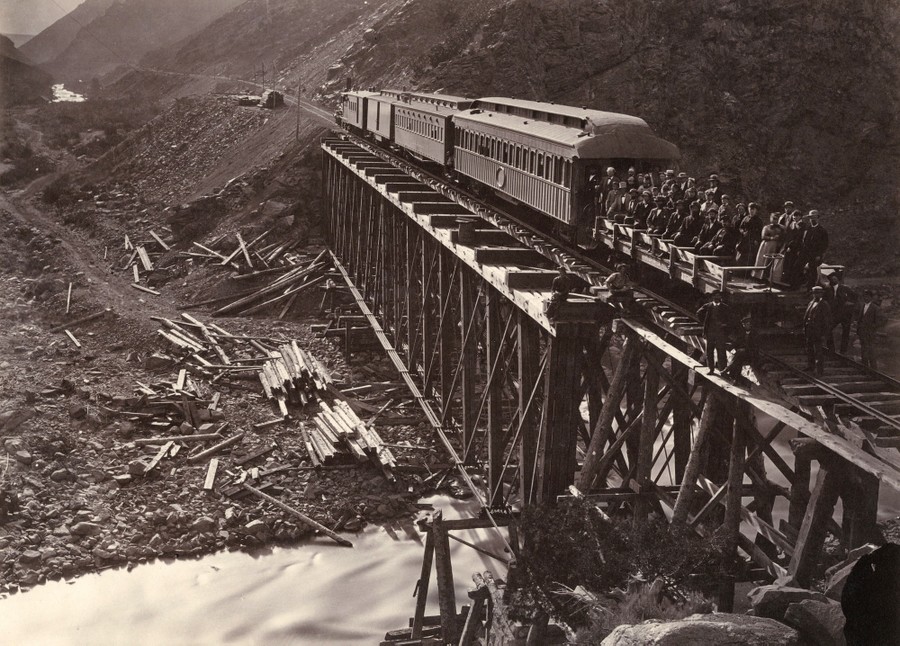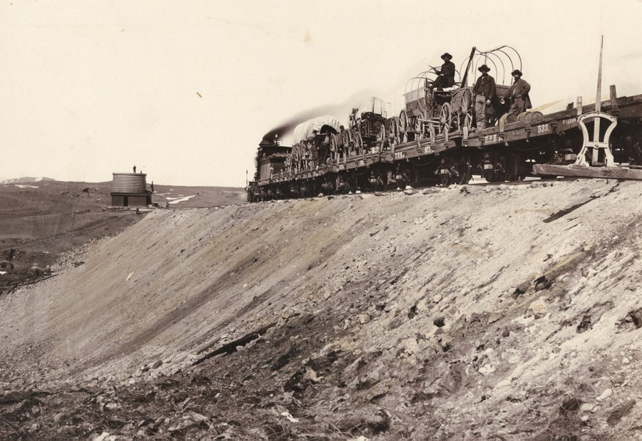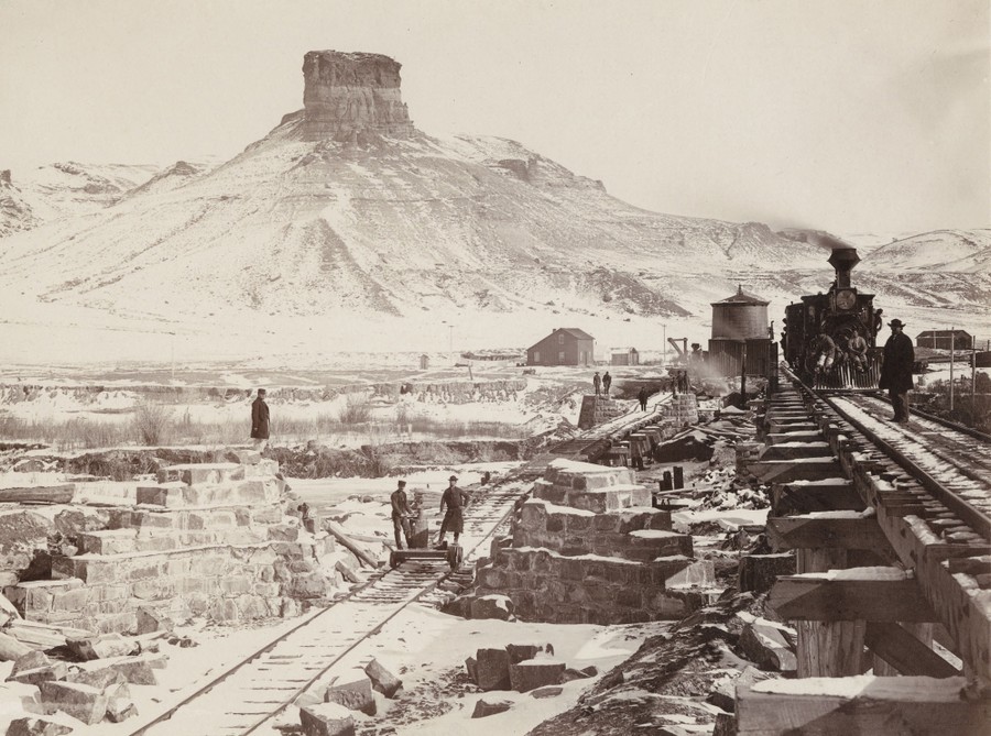 In the late 1860s, photographer Andrew J. Russell traveled west to document the construction of the Union Pacific Railway in Wyoming and Utah, including the famous “golden spike” moment on May 10, 1869, when the Union Pacific and Central Pacific railroads were joined in Promontory, Utah, creating the nation’s first transcontinental railroad. Russell captured images of the railway construction as well as the wide-open landscape of the American West and its inhabitants. See also, a previous photo essay from Timothy O’Sullivan, covering similar territory at the time.