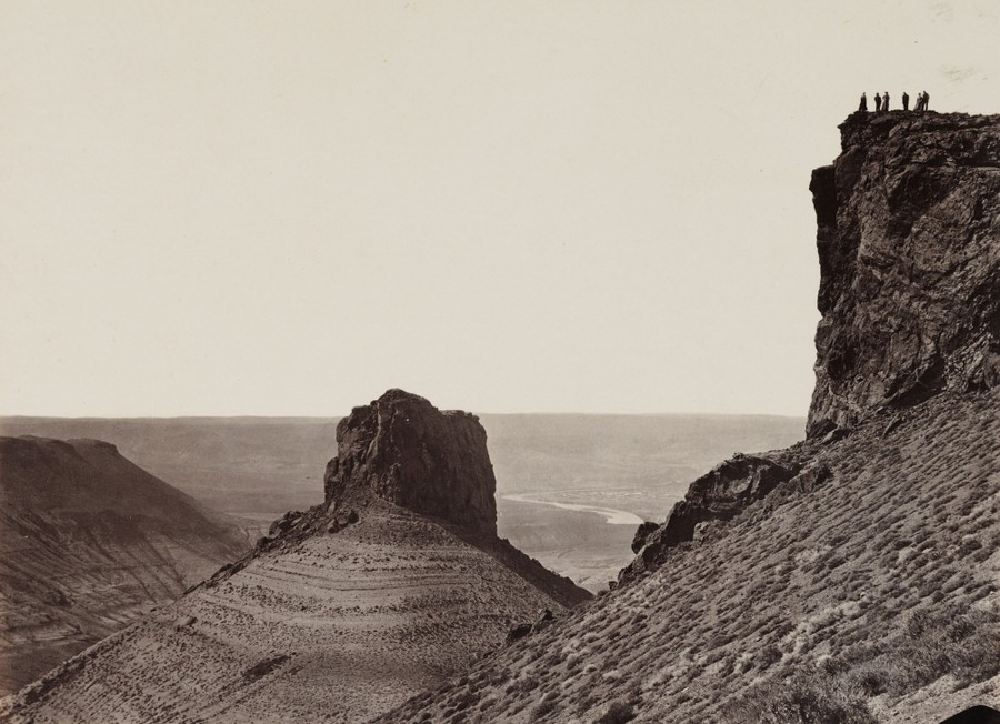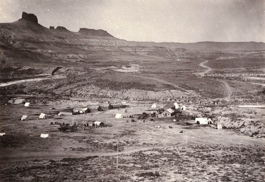 Read moreOn the mountains of Green River, looking up the valley. From the book Photographs Taken During Construction of the Union Pacific Railroad: “The standpoint for this view is nearly two thousand feet above the railroad, which can be seen winding through the bottom lands three miles away. Farther off can be seen the dim outline of Green River City, Utah.” #