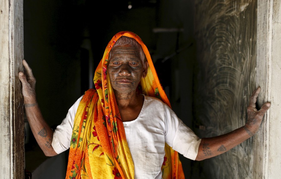 Read moreBishram, 70, a follower of Ramnami Samaj, who has tattooed the name of the Hindu god Ram on his face, outside his house in the village of Arjuni, in the eastern state of Chhattisgarh, India, on November 15, 2015. #