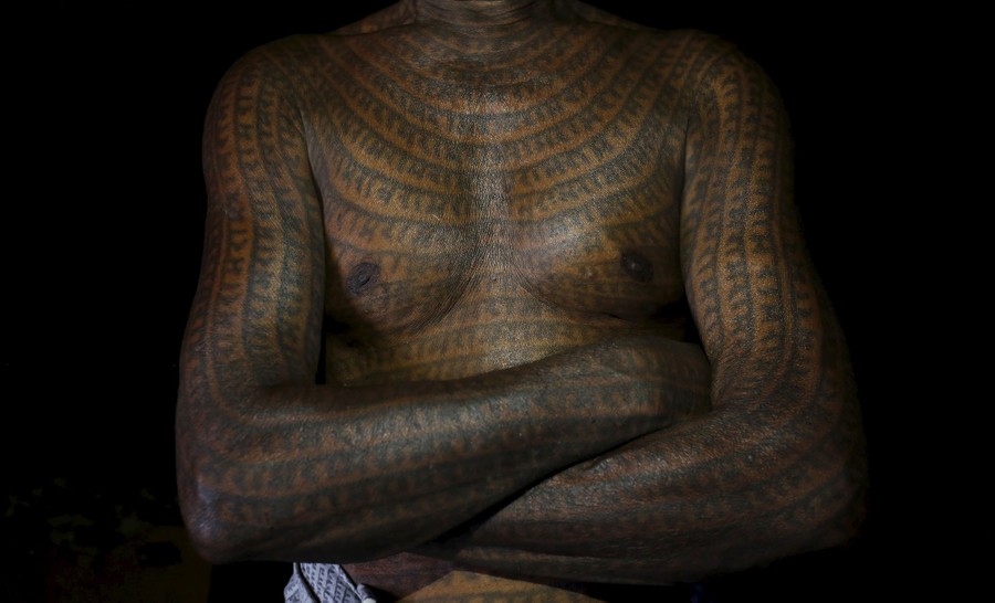 A century ago, low-caste Hindus, deemed ‘untouchables,’ faced widespread discrimination, and were not allowed to attend temples alongside those in the higher castes. In the Indian state of Chhattisgarh, a group called Ramnamis arose, who began to tattoo the name of the Hindu god Ram on their bodies—acts of faith and defiance to those in higher castes, saying to them “God is everywhere—even here with me.” Reuters photographer Adnan Abidi recently visited Chhattisgarh to document the changes that are taking place, as class-based discrimination has lessened over the years, and fewer young Ramnamis are getting the full-body tattoos common among their elders, who have proudly worn the name of God on their faces for decades.
