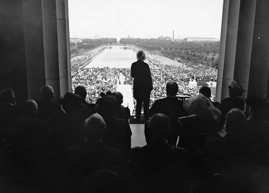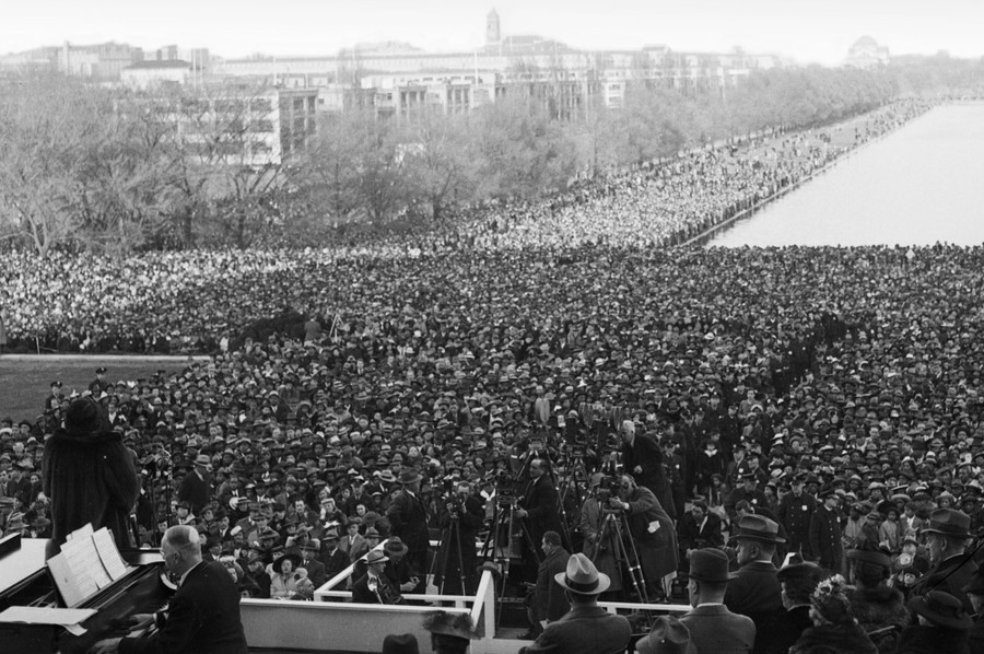Read moreThousands stand before the Lincoln Memorial and listen to the noted African American contralto Marian Anderson gives a free concert after she was barred from singing in the concert hall of the Daughters of the American Revolution, on April 9, 1939. #