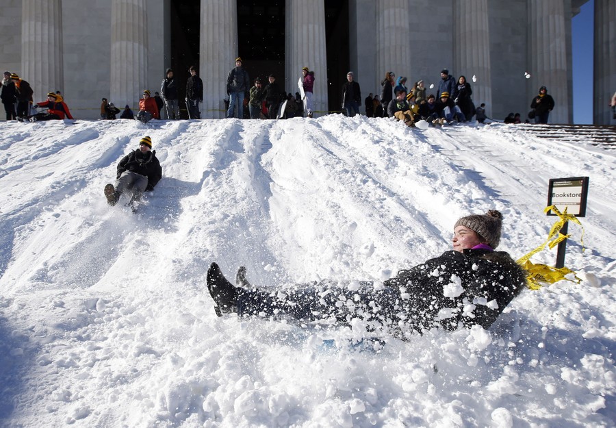 Read moreLocal children take advantage of the snow strewn over the steps of the Lincoln Memorial, converting the slope into a hill for sledding on February 9, 1935. #