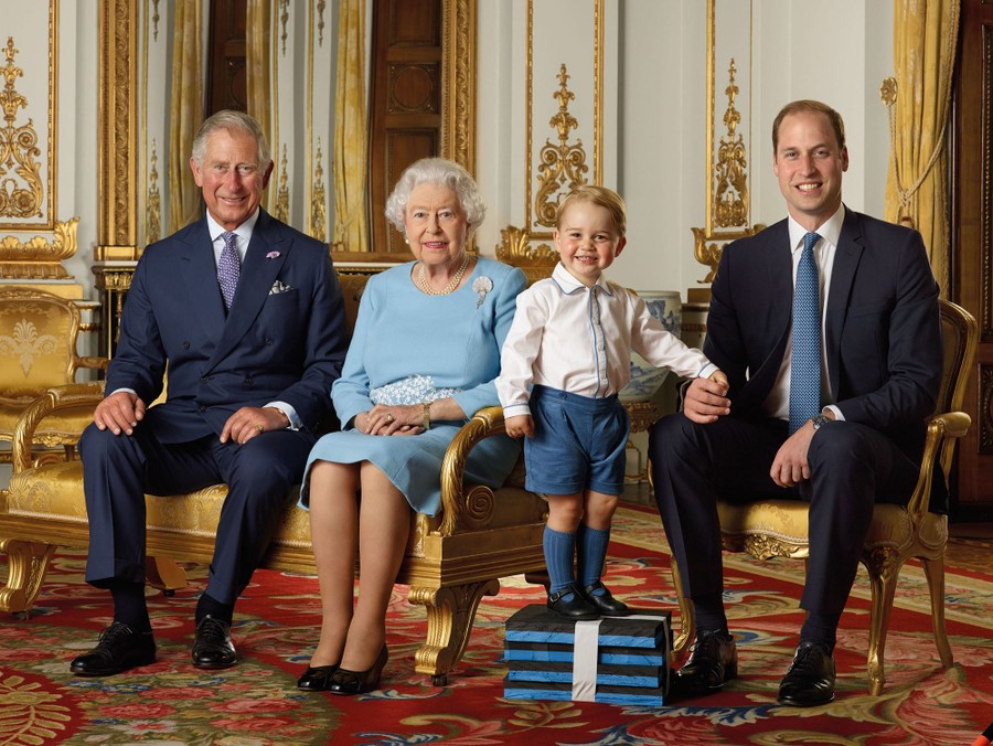 Read moreFour generations pose together in this handout image released by Buckingham Palace on April 20, 2016. From left: Prince Charles, Prince of Wales; Queen Elizabeth II; Prince George; and Prince William, Duke of Cambridge, pose during a Royal Mail photoshoot for a stamp sheet to mark the 90th birthday of Queen Elizabeth II in the White Drawing Room at Buckingham Palace in the summer of 2015 in London, England. #