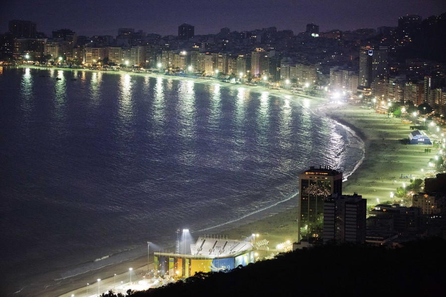 Read moreThe beach volleyball arena stands along Copacabana beach ahead of tonight's women's gold medal match between Germany and Brazil at the 2016 Summer Olympics on August 17, 2016. #