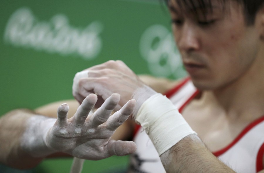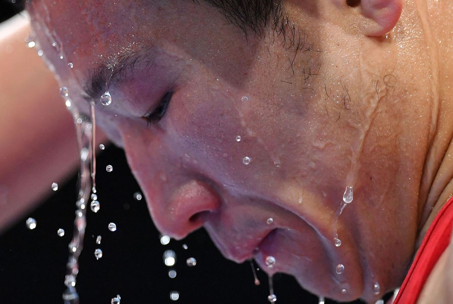 Read moreWater drops fall from China's Zhao Minggang's face as he is attended to ahead of fighting Azerbaijan's Kamran Shakhsuvarly during the Men's Middle (75kg) match at the Rio 2016 Olympic Games. #