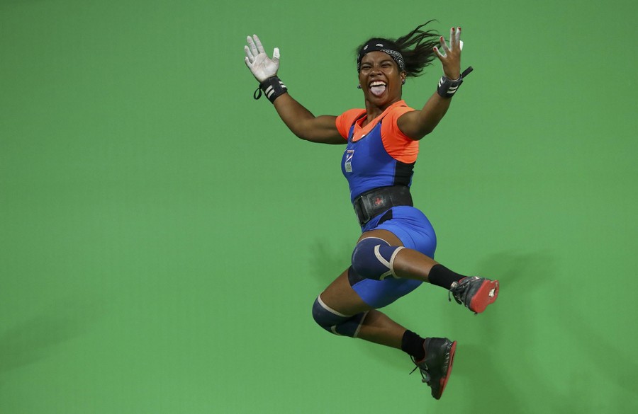 Read moreMathlynn Sasser of the Marshall Islands celebrates after a successful lift in the Women's 58kg Weightlifting event at Riocentro Pavilion 2 in Rio de Janeiro on August 8, 2016. #
