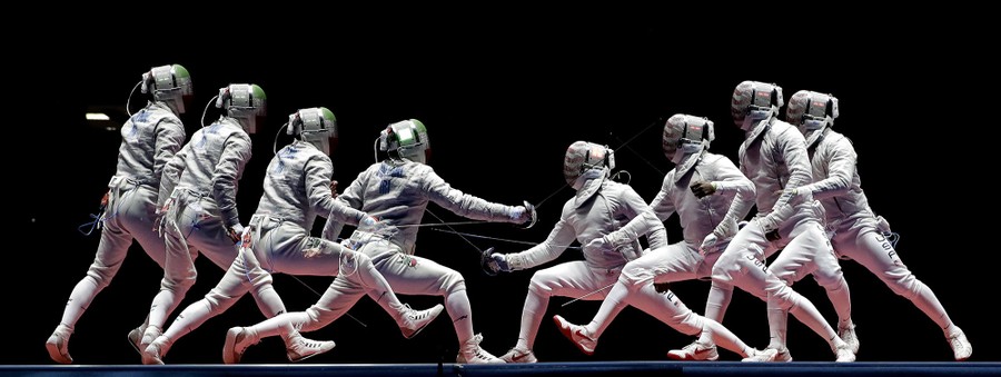 Read moreIn a photo taken using multiple exposure, Iran's Mojtaba Abedini, left, and United State's Daryl Homer compete in a men's individual sabre semifinal on August 10, 2016. #