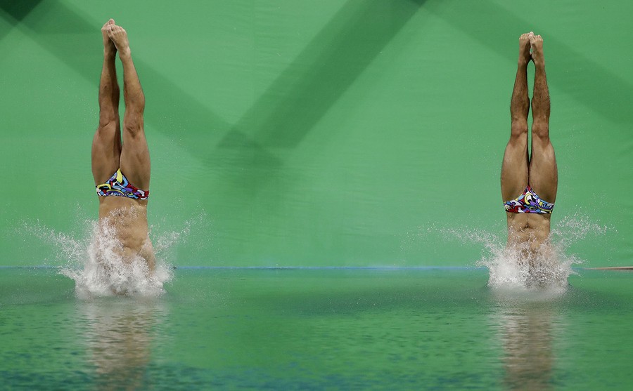Read moreItaly's Giovanni Tocci and Andrea Chiarabini compete during the men's synchronized 3-meter springboard diving final in the Maria Lenk Aquatic Center on August 10, 2016. #