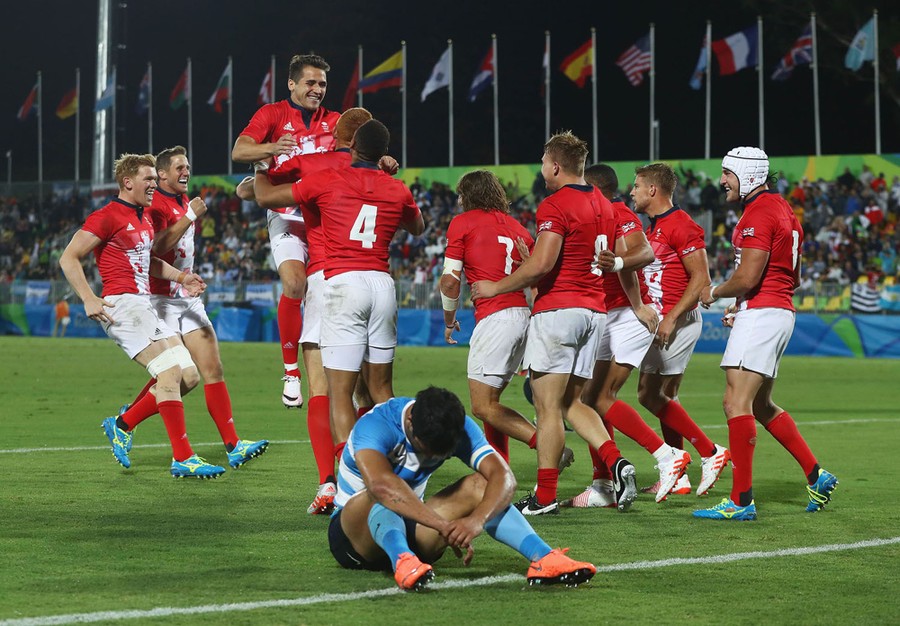 Read morePlayers of Argentina look dejected as Great Britain celebrate after the the Men's Quarter-final 3, Match 23 between Great Britain and Argentina on Day 5 of Rio 2016 at Deodoro Stadium on August 10, 2016. #