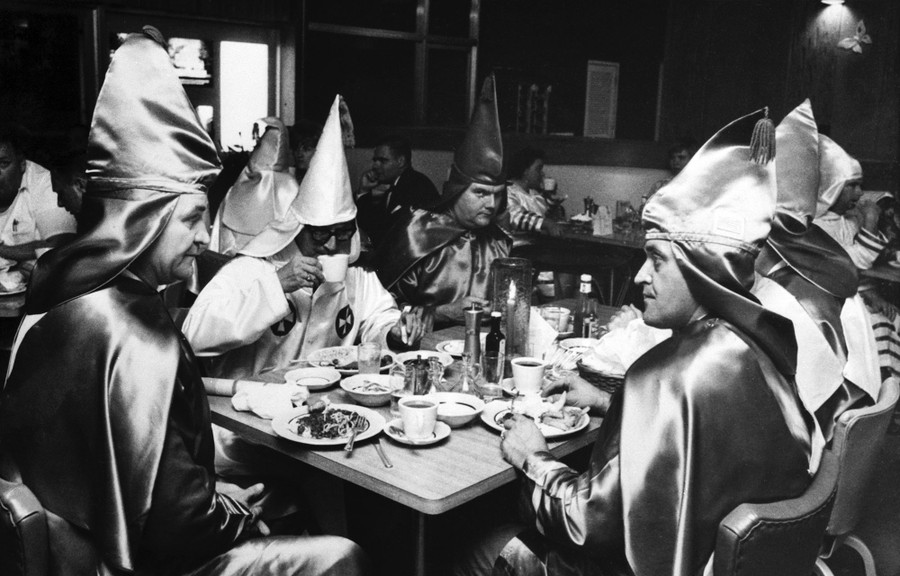 Read moreOriginal Caption: Klan Kaffee Klatsch. William M. Chaney (far left) of Greenwood, Indiana, Grand Dragon of the Klu Klux Klan for Indiana and Imperial Representative for Kentucky, dines with other Klansmen on October 15, 1967. A Klan motorcade which crisscrossed Indiana ended late October 15 near this Kentucky town. #
