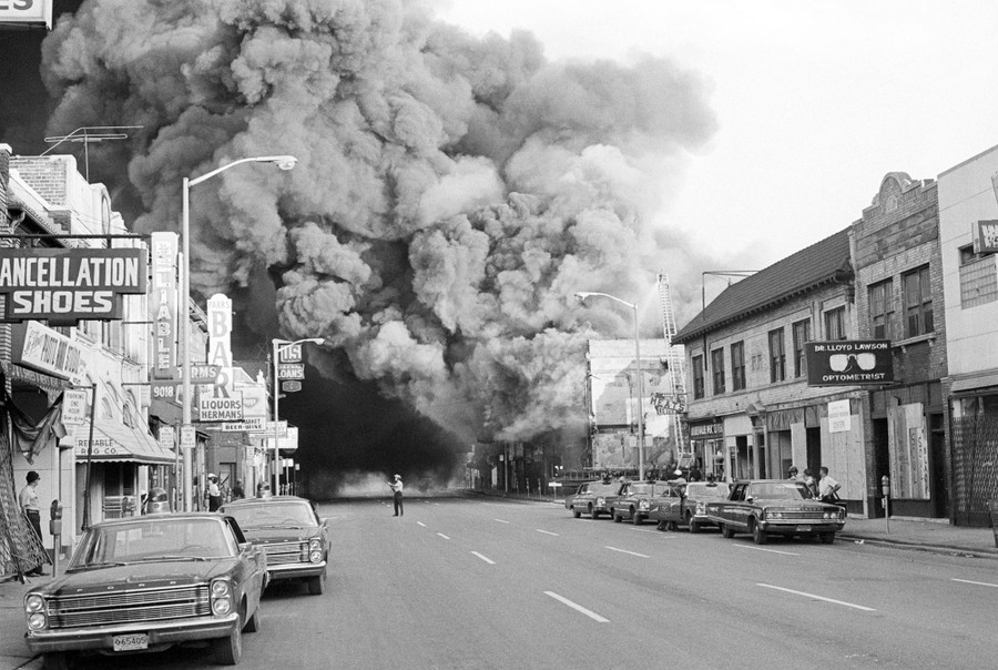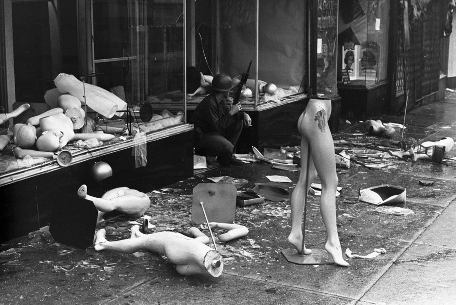 Read moreOriginal Caption: Tough-looking Michigan National Guardsmen push rioting Negroes back from a burning building with fixed bayonets on Detroit's riot-torn west side on July 26, 1967. National Guard tank crews blasted away at entrenched snipers with .50-caliber machine guns early July 26 after sniper fire routed policemen from a square-mile area of the motor city. #