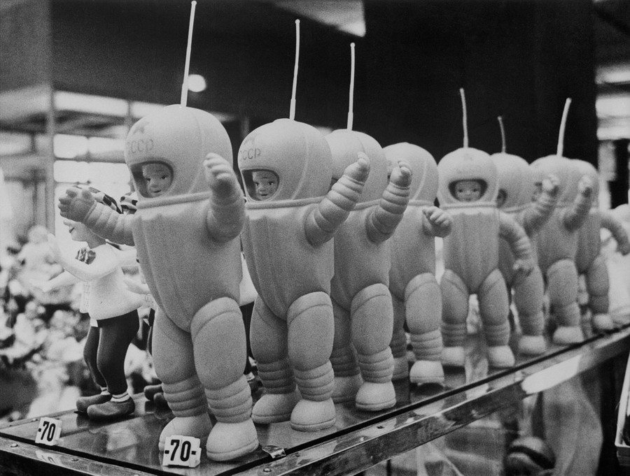 Read moreFestive Shopping. Moscow, U.S.S.R.: Toy cosmonauts line a shelf in the Moskva Department Store, one of the largest and most modern in Moscow. The toy dolls were among several suggest gifts displayed in the stores as shoppers prepared for the 50th anniversary of Russia's revolution celebrations. #