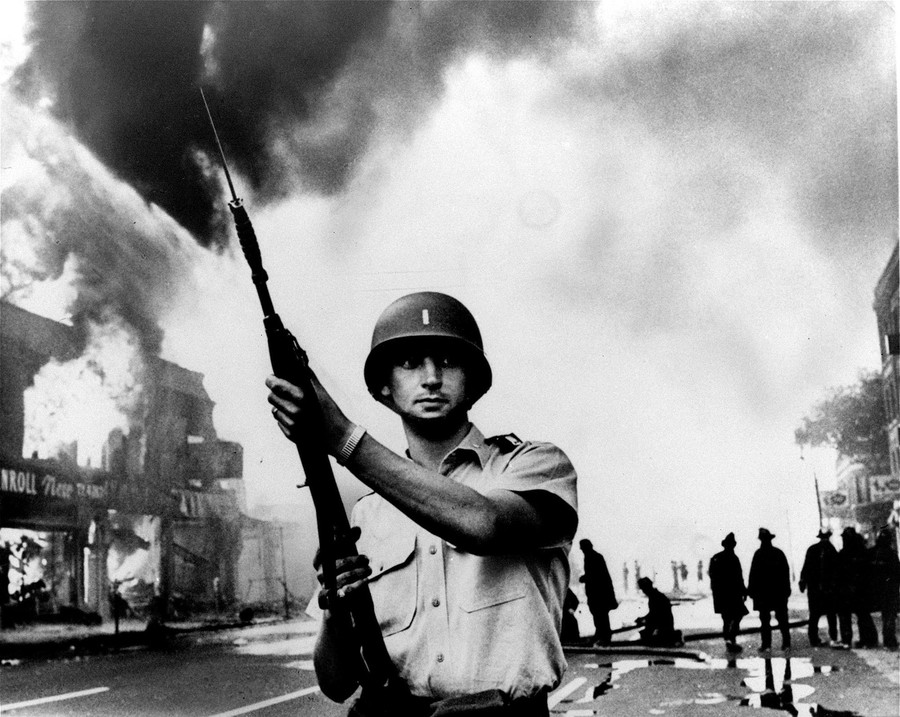 Read moreA National Guardsman stands at the ready at a Detroit intersection during the summer riots of 1967. Frustration and despair erupted from the sidewalks of northern U.S. cities where blacks saw little change following the Voting Rights Act of 1965. #