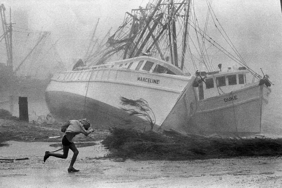 Read moreAn adventurous sightseer braves heavy rains and blowing water for a close-up view of two shrimp boats aground near Port Isabel, Texas, on September 25, 1967. The vessels were forced to the beach by the violent winds of Hurricane Beulah. Floodwaters from Beulah broke through a concrete flood diversion dam at Mercedes on September 24, drawing a watery trap around thousands of persons living along the normally grassy little floodway. 688 deaths were blamed on Hurricane Beulah. #
